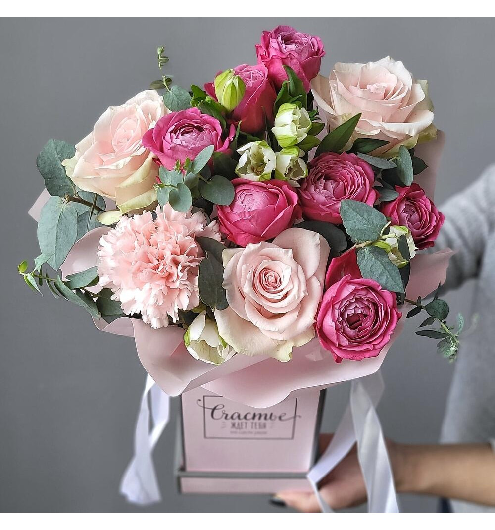 Купить Композиция с розами, пионовидными кустовыми розами и альстромерией в Караганде за 25 000 ₸ | интернет-магазин «Guls»