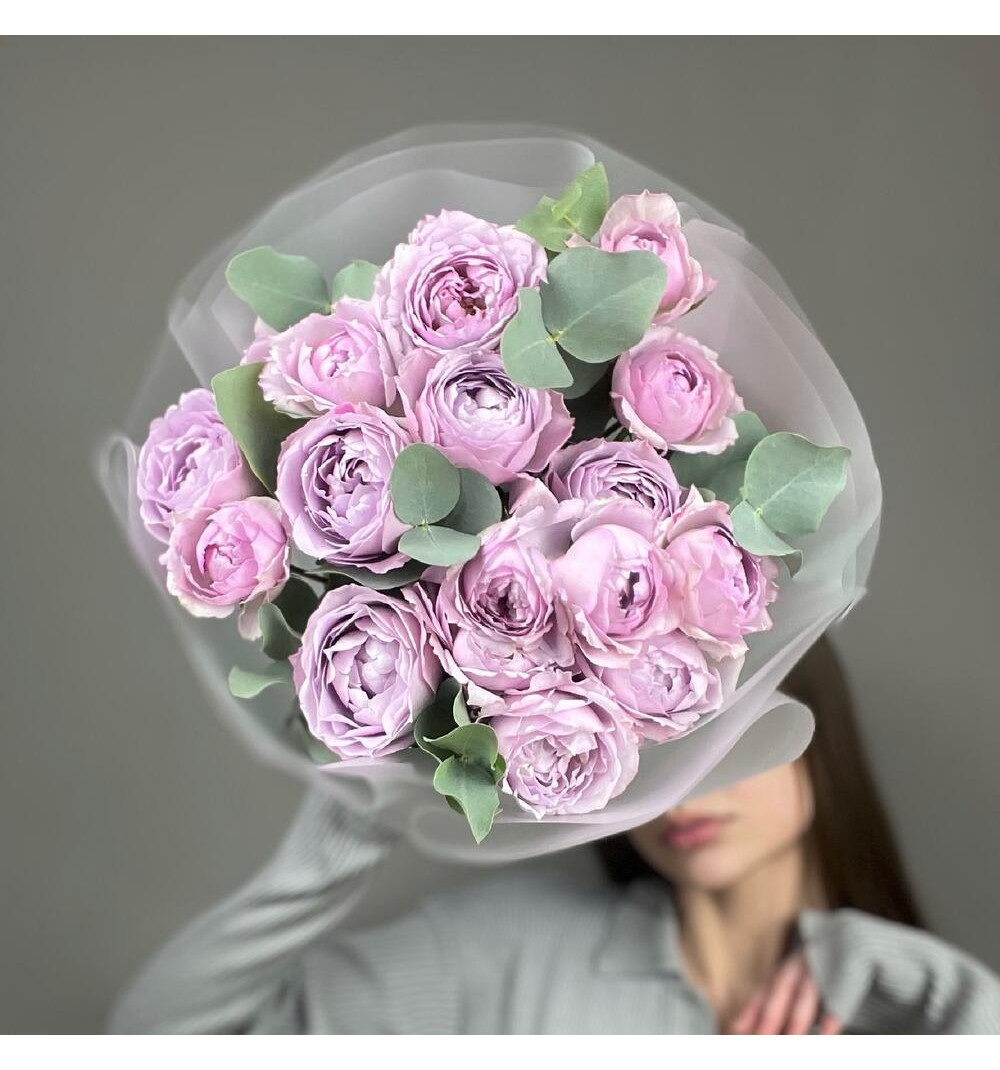 Кустовая пионовидная роза Лавандер Баблс 5шт